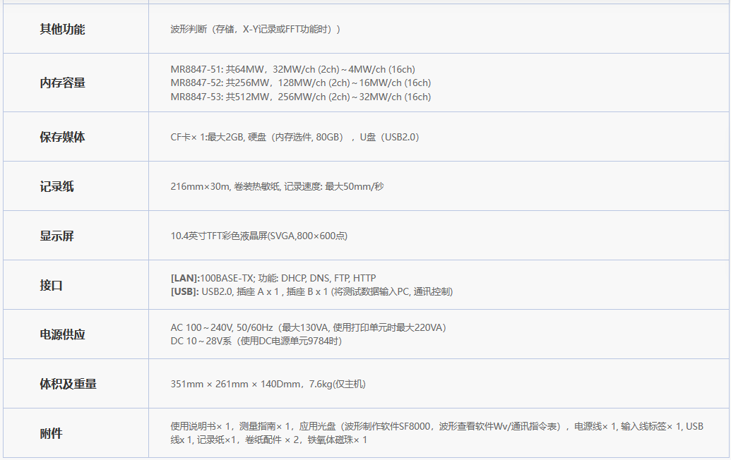 • 描述记录仪+波形发生器功能 增加了5个新单元 最大16通道+16个逻辑通道 最大10通道+64个逻辑通道 20MS/s 32MW~256MW (2通道) 内存 12bit/16bit A/D 分辩率 USB, HD, CF卡