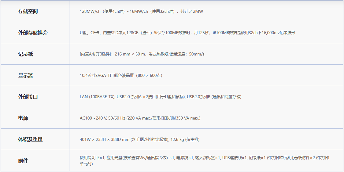 • 描述模拟32ch+逻辑32ch~模拟28ch+逻辑64ch输入 20MS/s(所有通道) 共计512MW大容量存储 U盘、PC卡、内置SSD单元