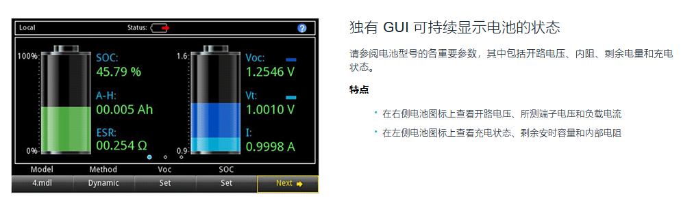 • 描述2281S-20-6 动态电池模拟器和配有 TFT LCD 显示屏的精密直流台式电源使用一个模型来模拟电池在其放电周期中的响应。由于该模型可以基于电池将为其供电的产品的平均电流,您可以估计电池寿命并分析电池寿命期间的产品性能。它有 5 种内置的电池模型可供使用。