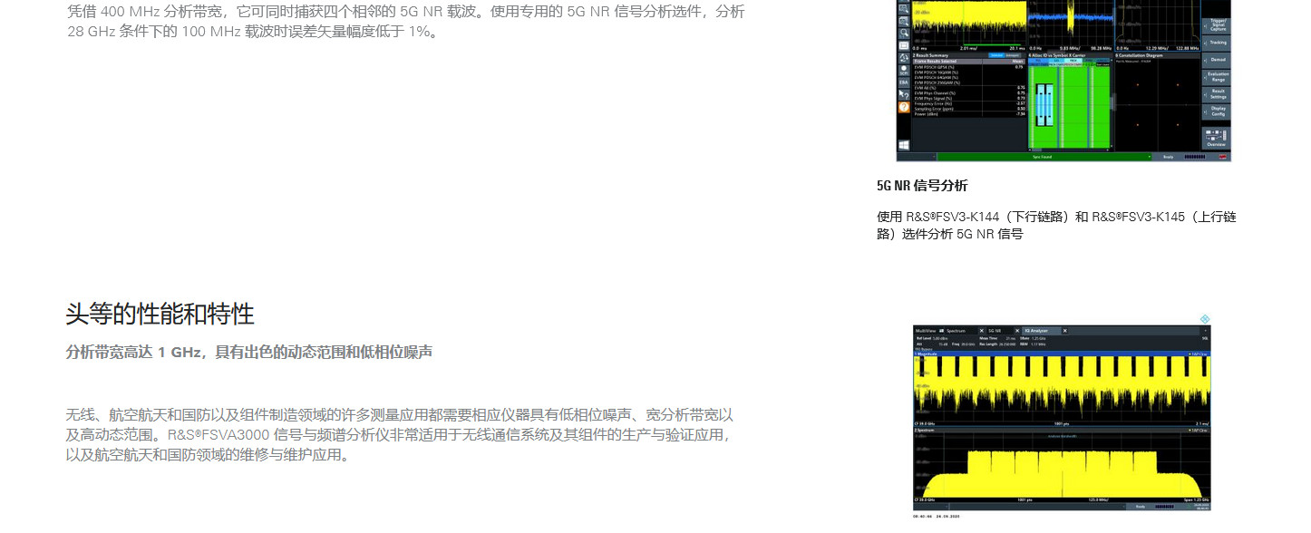 • 描述FSVA3000 信号与频谱分析仪的分析带宽高达 1 GHz,并具有低至 –120 dBc/Hz 的相位噪声和高动态范围,适用于要求严格的 5G NR 测量应用。分析仪测量速度快,使用简单,非常适用于实验室和生产过程中的高要求信号分析任务。