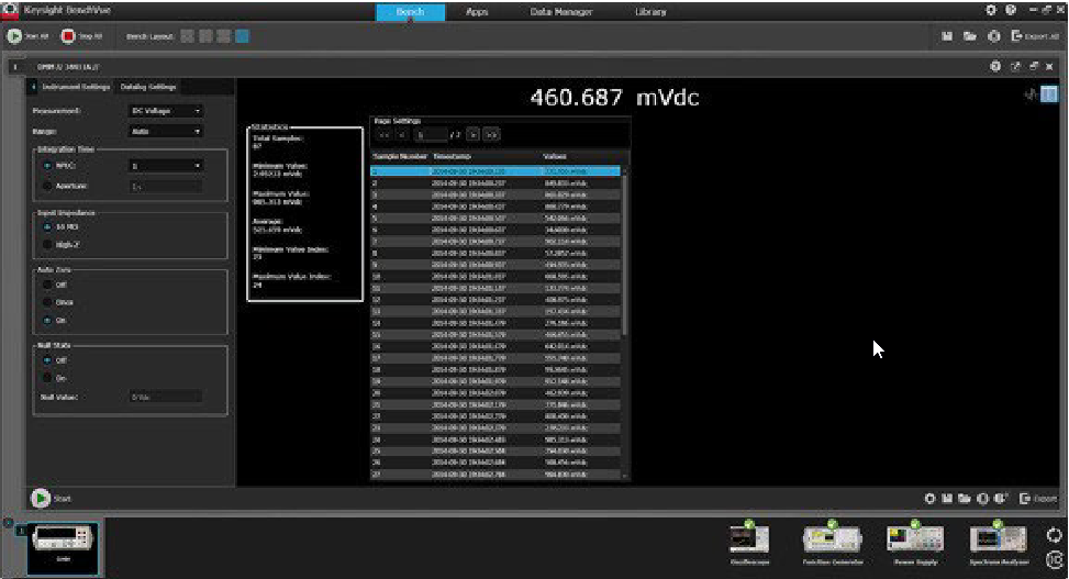 Keysight 34420A 纳伏表 / 微欧表(原安捷伦)是一款高灵敏度万用表,专为执行低电平测量而优化。 这款数字毫欧表将低噪声电压测量与电阻和温度测量功能融于一体。34420A纳伏表 / 微欧表可进行精确、可重复的低电平测量。 通过结合使用七位半分辨率、可选的模拟和数字滤波、24 小时内基本直流电压精度为 2ppm,以及一个屏蔽式铜针连接器,您将会获得精确可靠、可重复的测量结果。 它为灵活和高性能的低电平测量树立了新标准,并为您提供准确和可重复的测量,值得信赖。