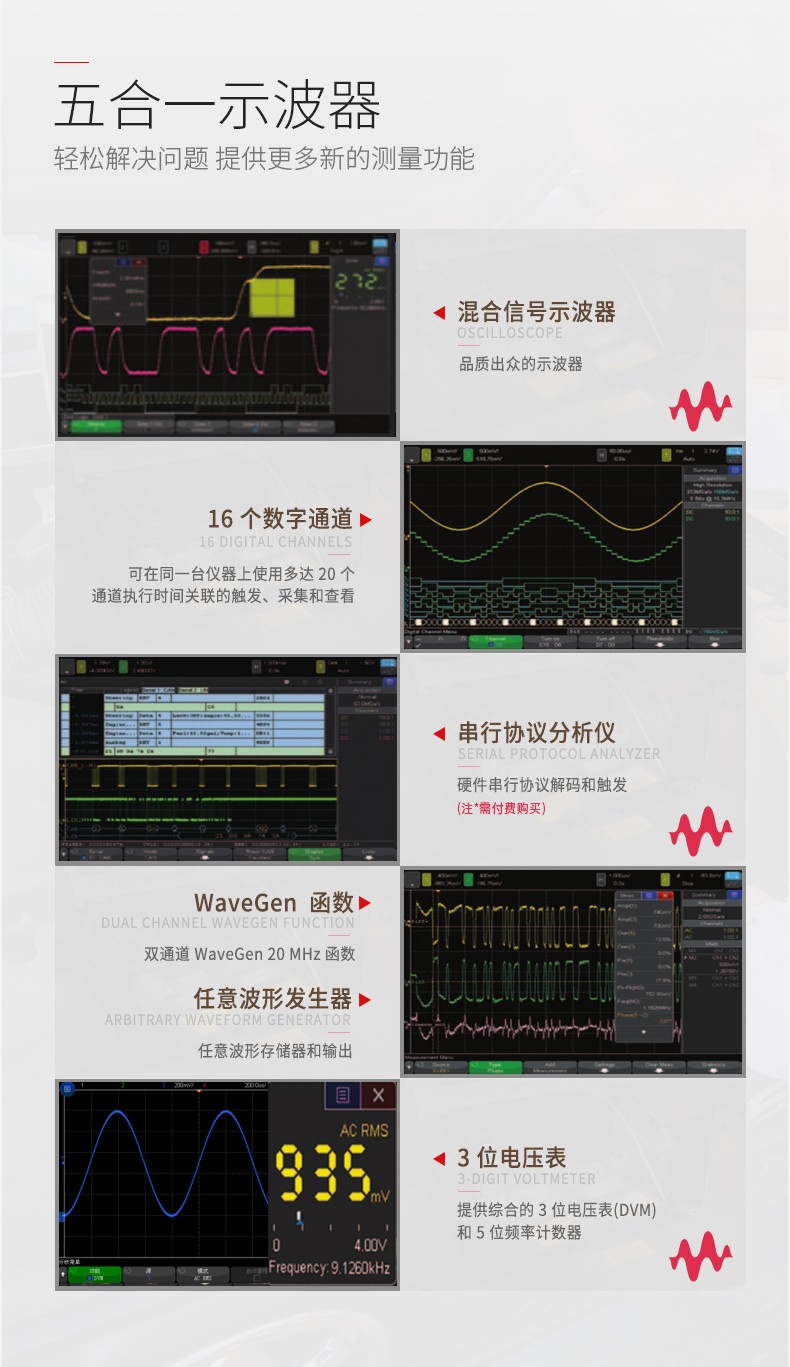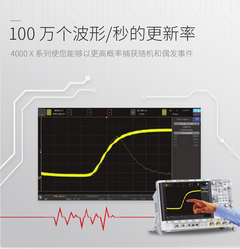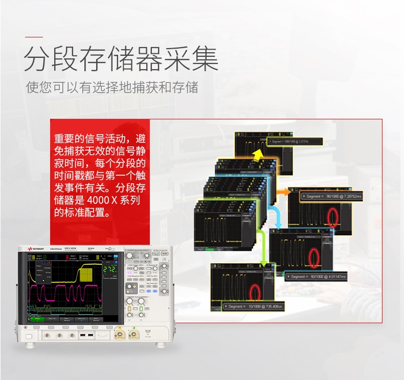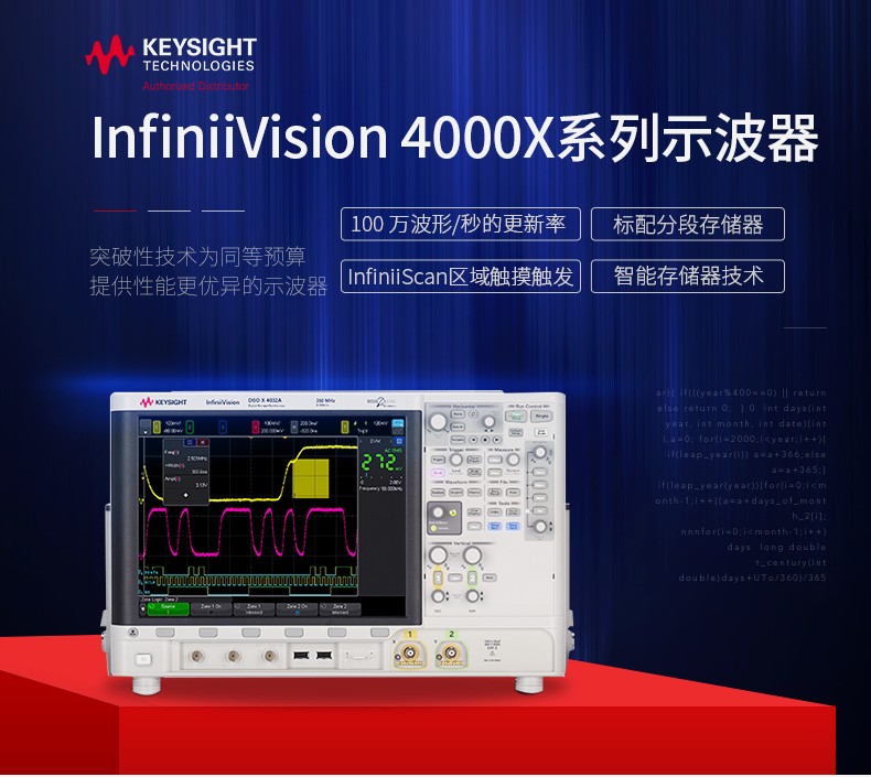 • 描述4000 X 系列拥有一系列引以为傲的配置,包括采用了电容触摸屏技术的 12.1 英寸显示屏、InfiniiScan 区域触摸触发、100 万波形/秒捕获率、MegaZoom IV 智能存储器技术和标配分段存储器。
